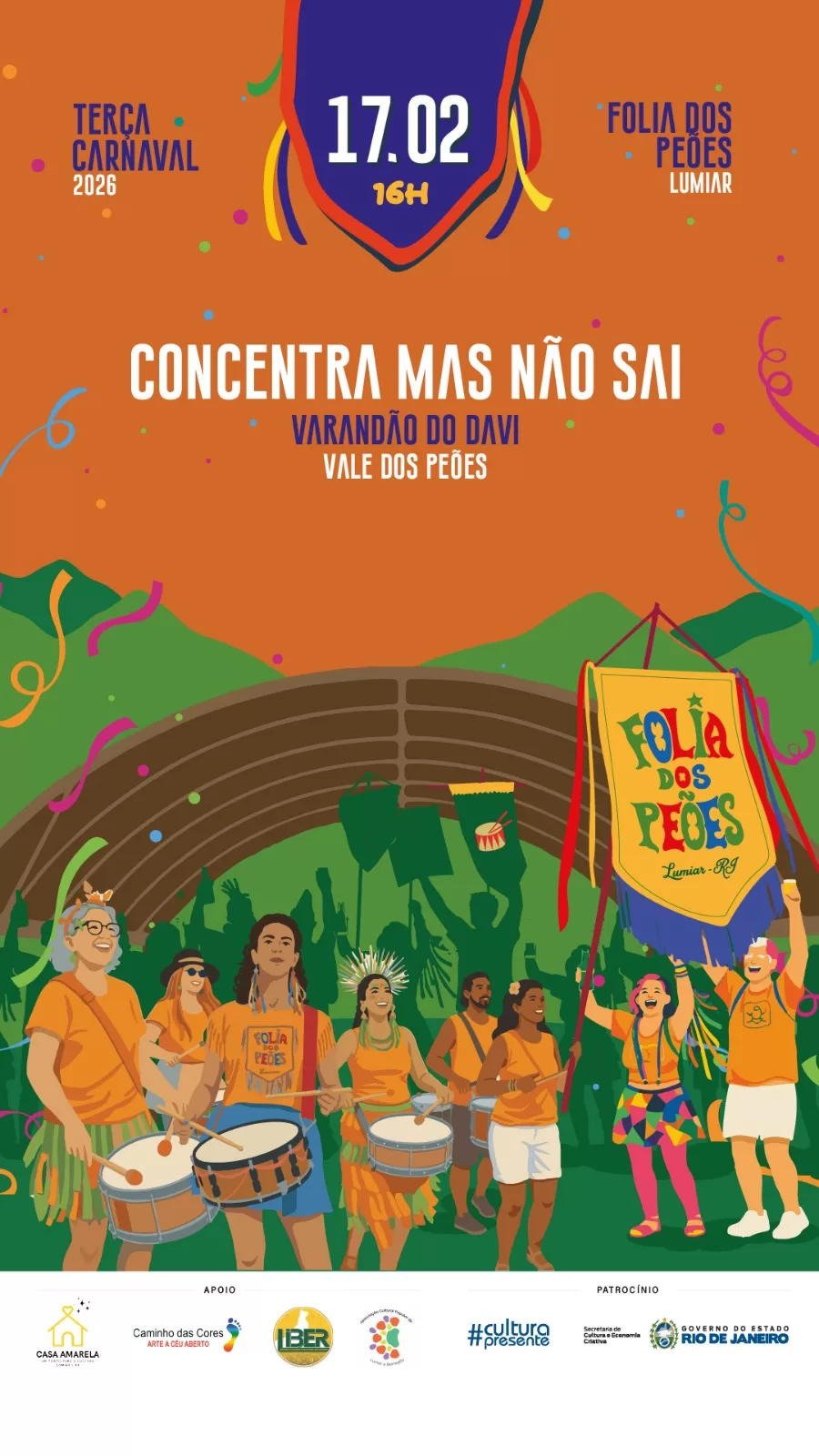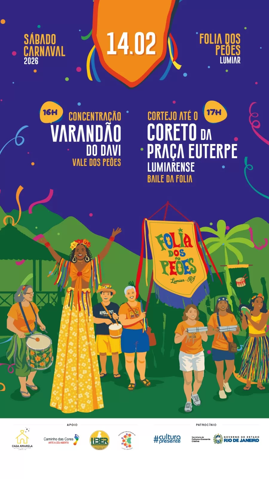 O Governo do Estado do Rio de Janeiro e a Secretaria de Estado de Cultura e Economia Criativa, através do edital Folia RJ 2026, apresentam o Bloco Folia dos Peões no Carnaval de Nova Friburgo, no distrito de Lumiar. O desfile do Bloco de Embalo será no sábado, 14 de fevereiro, e na terça feira, 17, tem o “Concentra mas não sai”. O repertório do grupo é inspirado nos tradicionais bailes de Carnaval de clubes de outrora, apresentando marchinhas, marchas-rancho, sambas-enredo e recentemente incluíram clássicos do axé.