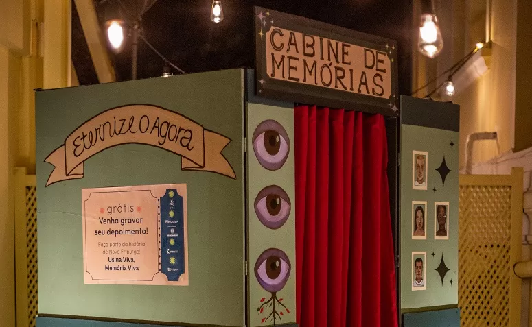 De 15 a 30 de julho, o projeto Usina Viva vai proporcionar uma experiência sensível de escuta e registro em diversos territórios públicos de Nova Friburgo. “Cabine de Memórias” itinerante é um espaço acolhedor, intimista e poético onde cada pessoa é convidada a entrar, sentar, olhar para si, se ver e compartilhar uma memória. Pode ser uma história da cidade, da família, da infância, de um amor ou de algo que se perdeu no tempo. Um lugar onde toda memória importa.