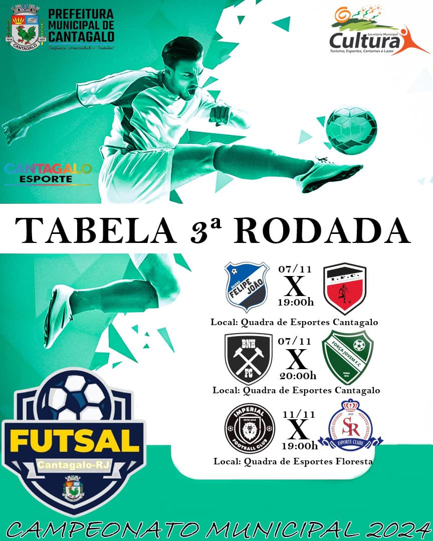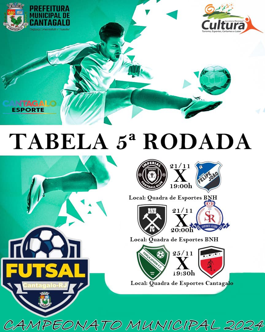 A prefeitura de Cantagalo, através da Secretaria de Cultura, Turismo, Esportes, Certames e Lazer, promoverá a 2ª edição do Campeonato Municipal de Futsal 2024, na categoria Adulto Masculino.