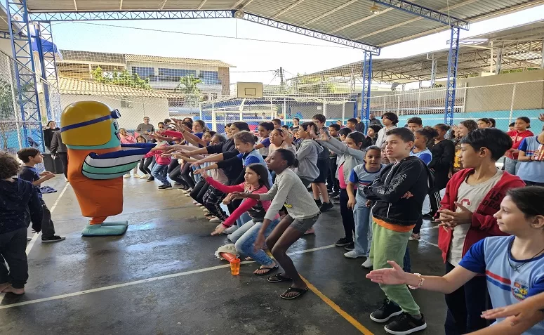 Um peixinho voador, muitos sorrisos e uma missão pra lá de especial: falar sobre o cuidado com a água e o meio ambiente. Foi assim a visita do Azulino, mascote da Águas do Rio, às escolas Manoel Bittencourt, em Ibipeba (distrito de São Sebastião do Alto), e Teotônio Brandão, em Itaocara, no interior fluminense. Acompanhado de abraços e olhares curiosos, ele conquistou a garotada e levou uma lição que vai muito além da sala de aula.