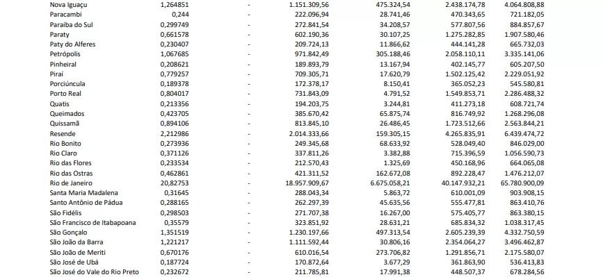 O total depositado no mês de setembro foi de R$ 1,3 bilhão. Desde o início deste ano, ao adicionar as cotas-parte e os repasses relacionados às transferências federais e à receita diretamente arrecadada pelo Estado, os municípios receberam um total acumulado de R$ 14,5 bilhões.