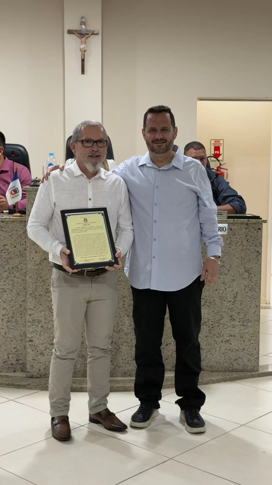 “Conquistando reconhecimento regional junto ao empresariado local e regional por sua atuação ética, transparente, imparcial e firme, tomando decisões que visam sempre à economia de recursos públicos e o desenvolvimento da economia local e regional. Deste modo, é justa esta singela homenagem”, justificou o vereador John Vitor Ladeira Monnerat.