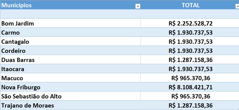 Confira abaixo os valores dos municípios da região: