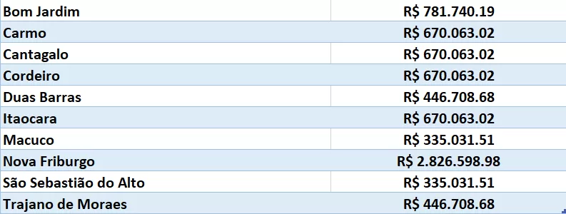 Confira, abaixo, os valores dos municípios da região: