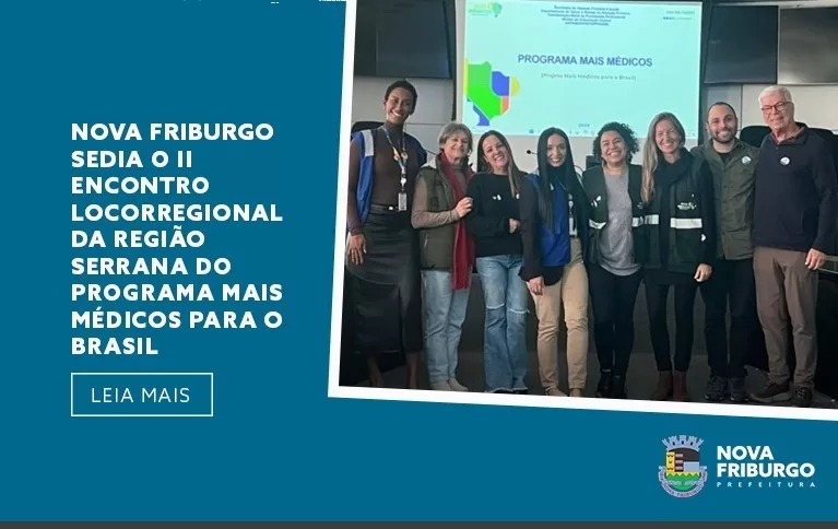 Na terça-feira (09), o município de Nova Friburgo sediou o II Encontro Locorregional da Região Serrana do Programa Mais Médicos para o Brasil. O evento contou com a presença de representantes do Ministério da Saúde, da Secretaria de Estado de Saúde do Rio de Janeiro (SES/RJ) e de municípios da região, reunindo médicos do programa e gestores da Atenção Primária.