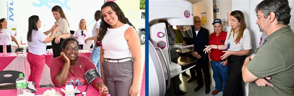 Por meio da unidade móvel, o Sesc Saúde Mulher consegue se mostrar presente em bairros da cidade do Rio de Janeiro e municípios do Estado onde não há sede do Sesc RJ. A unidade se divide em dois espaços amplos e conta com moderna tecnologia. Numa sala, equipada com mamógrafo, são feitas as mamografias em mulheres entre 50 e 69 anos; na outra, com cama ginecológica, ocorre a coleta para exames de Papanicolau em mulheres de 25 a 64 anos.