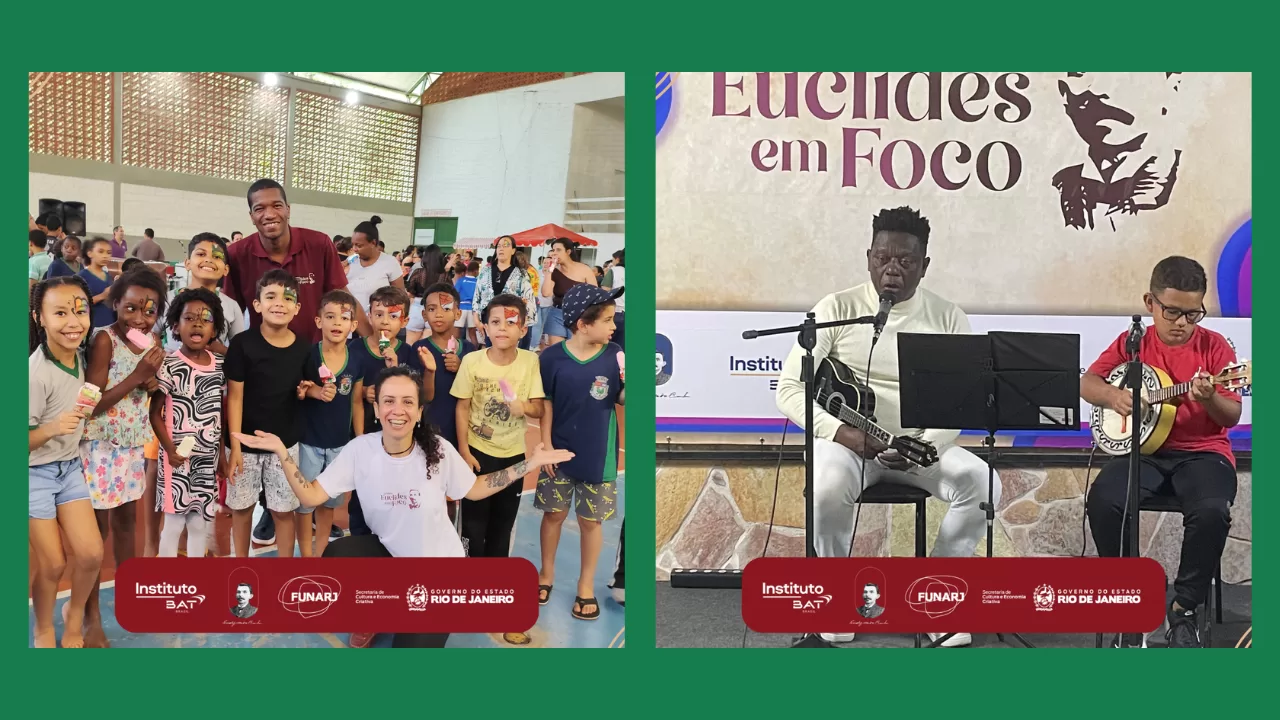 Com apoio institucional do Instituto BAT, e com a cessão do espaço pela FUNARJ, o Projeto Euclides em Foco, contemplado pela Secretaria de Cultura e Economia Criativa do Estado do Rio de Janeiro através da Lei de Incentivo a Cultura, encerra 2025 reafirmando sua missão de promover cultura, educação, inclusão e memória. O conjunto de ações realizadas ao longo do ano confirma o projeto como um agente de transformação social, fortalecendo vínculos comunitários e ampliando o acesso da população às diversas linguagens artísticas e formativas.