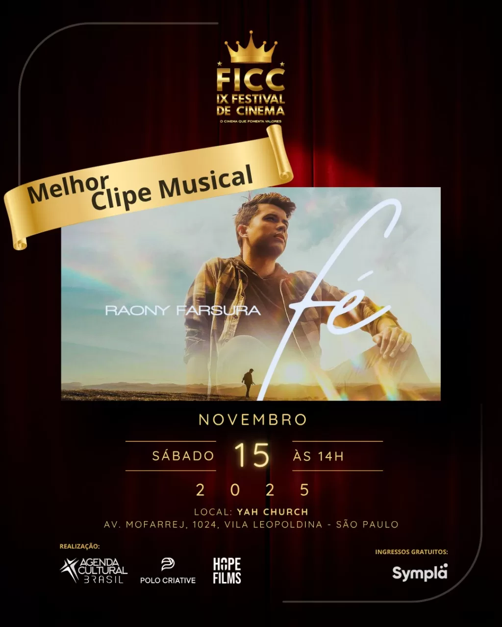 “É uma honra estar novamente entre tantos trabalhos incríveis. Acredito que quando entregamos o nosso melhor com propósito e verdade, o reconhecimento vem como consequência. Deus não promove o orgulho — Ele promove o propósito e a Sua Palavra. ‘Fé’ nasceu em um momento muito pessoal, com testemunhos reais, e ver essa mensagem alcançar tantas pessoas já é, por si só, um prêmio. Obrigado, Jesus! Toda honra e toda glória sejam dadas a Ti”, declara Raony.