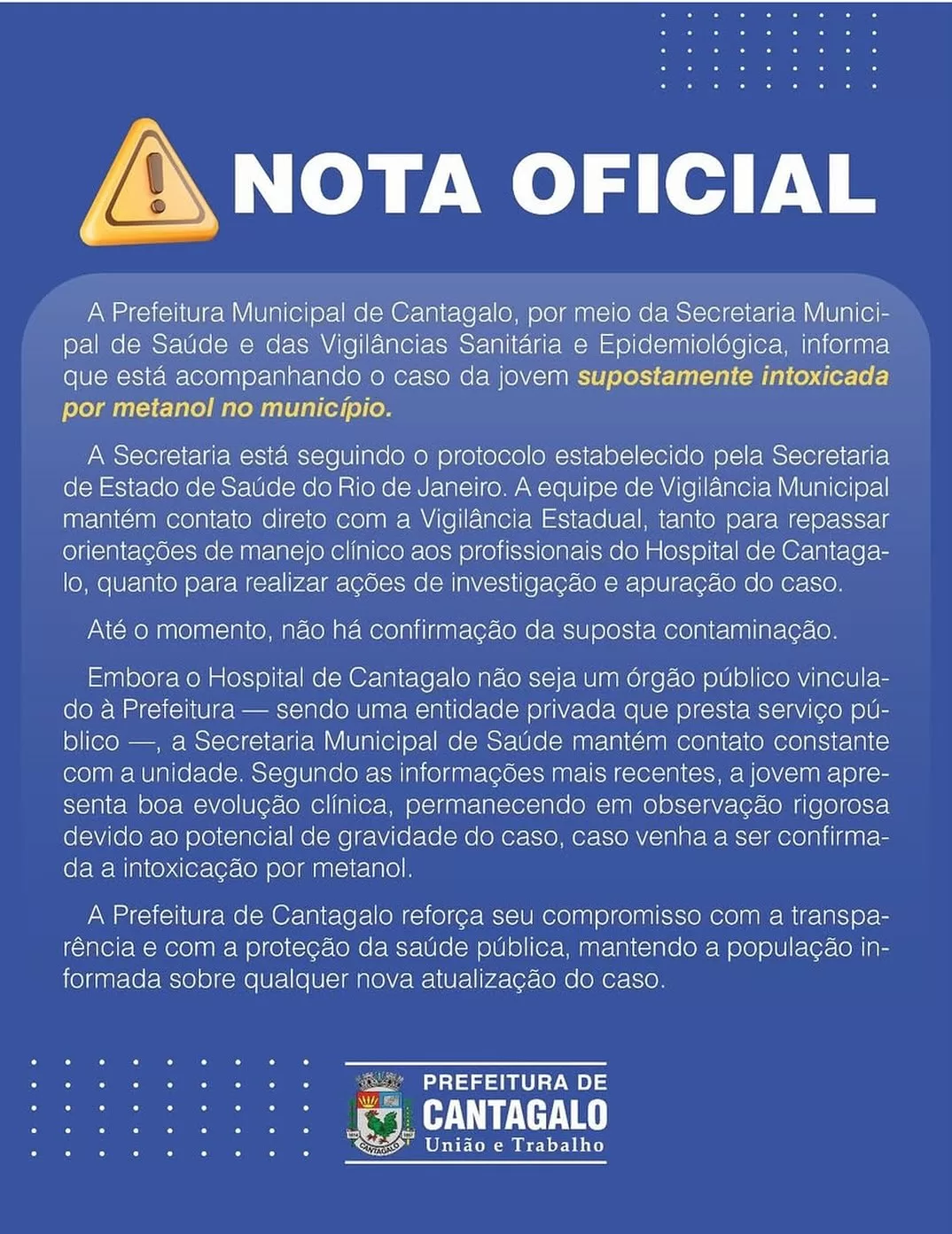 Abaixo, veja a nota oficial publicada pela Prefeitura de Cantagalo: