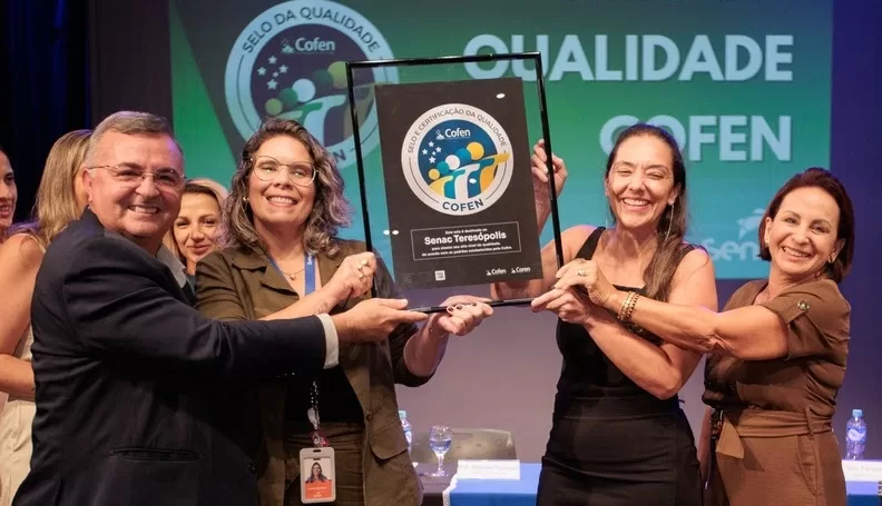 A unidade Senac Teresópolis acaba de receber, com 99% de conformidade, o Selo de Qualidade Cofen, a mais importante certificação brasileira de qualidade no ensino do curso Técnico em Enfermagem. A cerimônia de entrega foi realizada na noite da última sexta-feira, dia 06 de fevereiro de 2026, no auditório da unidade, com a presença da conselheira federal do Conselho Federal de Enfermagem (Cofen), Ellen Peres, da conselheira do Coren RJ, Camila Matheus Carvalho, da deputada federal, Enfermeira Rejane e dos representantes do Senac RJ, como a gerente da unidade e a supervisora técnica, Marcela Sampaio e Fernanda Lima, respectivamente, além do especialista de Saúde, Manoel Silva. Até o presente momento, essa foi unidade mais bem avaliada pelo Conselho.