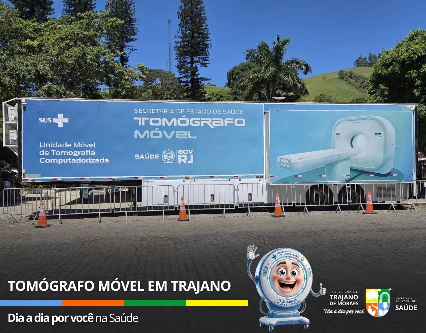 Trajano recebeu nesta terça-feira, dia 17 de março, a Unidade Móvel de Tomografia Computadorizada da Secretaria de Saúde do Estado. O Tomógrafo Móvel vai atender à demanda reprimida do Município – ou seja, pessoas que aguardam pelo exame.